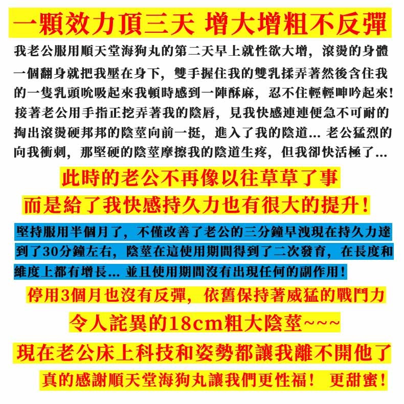 10-27台灣順天堂海狗丸官方正品,【大】男人的秘密武器,純中藥調理不傷身,可滋養睪丸二次發育,增大增粗 !完美解決所有性功能障礙,事前一粒輕鬆“硬”對自如,藥勁猛烈幹她一夜搞到她求饒! - ③療程6瓶 僅需NT$:1980【一夜七次郎】僅剩5組